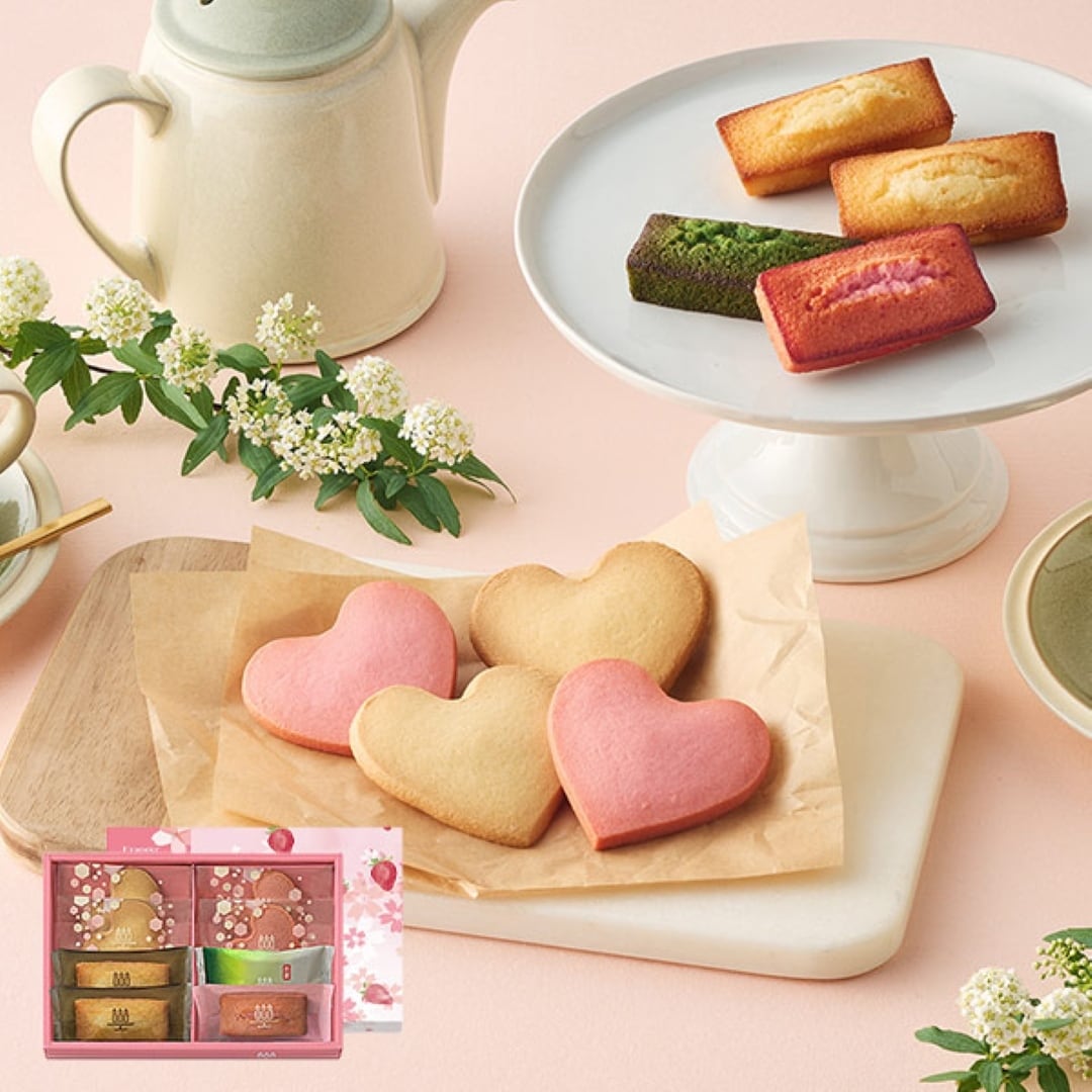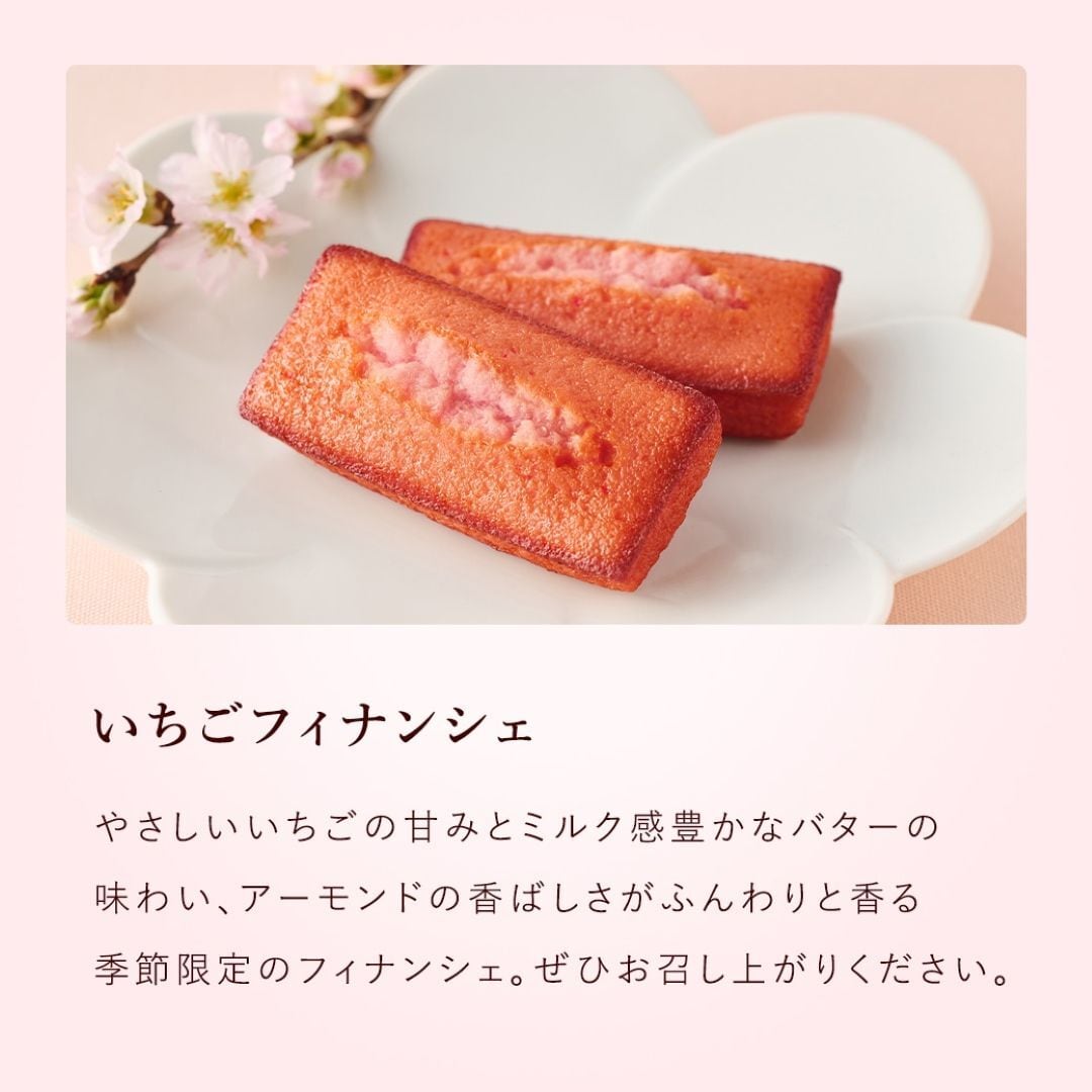 春限定いちごと抹茶のフィナンシェと、いちごサブレを詰め合わせました。