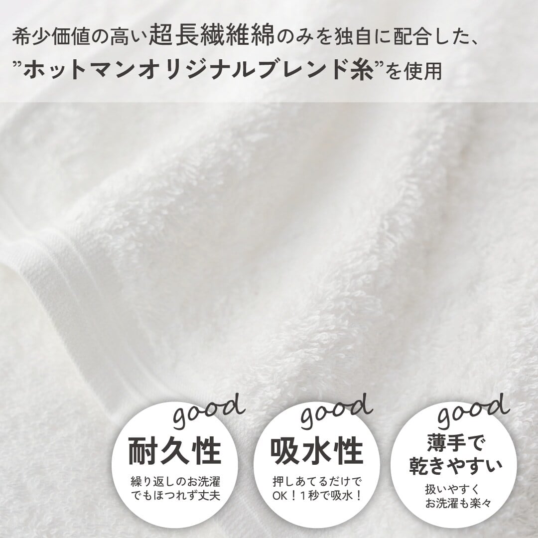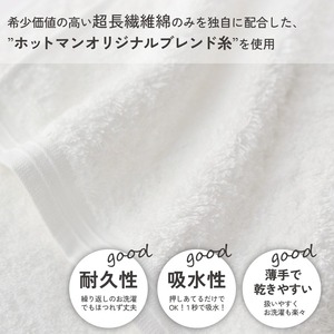 超長繊維綿だけをブレンドしたオリジナルの細い糸を高密度に織ったタオルです。繊細でなめらかな肌合いと、拭いた時のさっぱりとした気持ちよさが特徴です。