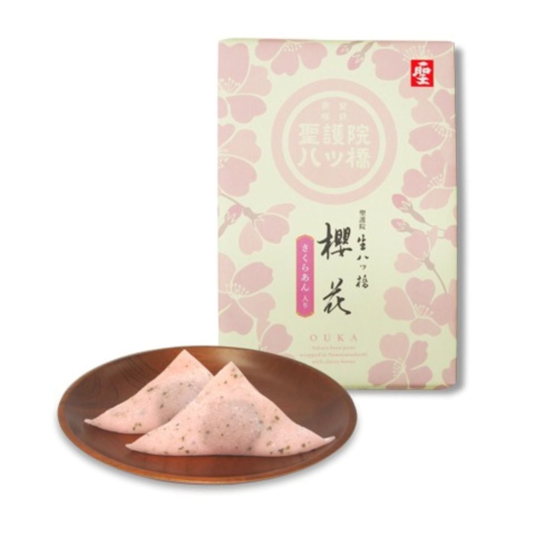 桜の葉を細かく刻んで練り込んださくらの生八ッ橋で さくらあんを包みました。 春の香りをお楽しみ下さい。