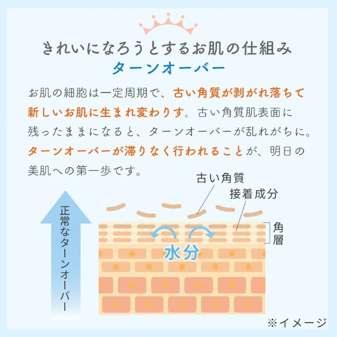 ただ汚れを落とすだけではなく、①不要な角質などの汚れを落とす ②お肌に大切なうるおいを残す ③ターンオーバーをサポートする。