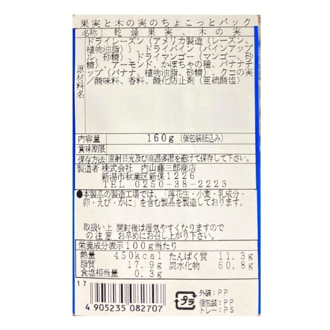 〈成城石井〉 果実と木の実のちょこっとパック 160g(個包装紙込み)