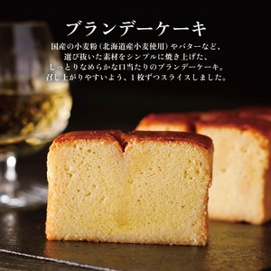 国産の小麦粉(北海道産小麦使用)やバターなど、選び抜いた素材をシンプルに焼き上げた、しっとりなめらかな口当たりのブランデーケーキ。優雅に香り立つのは、生地から仕上げまで贅沢に加えた、オリジナルブレンドのブランデーです。召し上がりやすいよう、1枚ずつスライスしました。